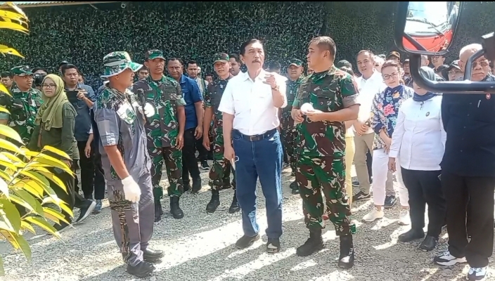 KAB.BANDUNG BARAT-Mentri Koordinator Bidang Kemaritiman dan Investasi Rebublik Indonesia Luhut Binsar Panjaitan, didampingi Kepala Stap Angkatan Darat Jenderal TNI Maruli Simanjuntak,dan Pejabat Gubernur Jawa Barat Beyy Triadi Machmudin,beserta Pangdam III Siliwangi Mayjen TNI Mohammad Fadjar,Meninjau langsung cara kerja Produk Unggulan Kasad seperti perahu ponton penarik sampah, tungku pembakar sampah, pencacah sampah dan tanki air, yang ditempatkan di Sektor 9 Satgas Citarum Harum, kecamatan Batujajar Kabupaten Bandung Barat, pada Sabtu (10/8/2024).