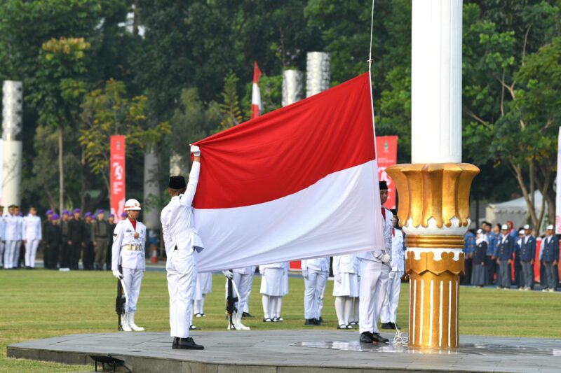 Kota Bandung — Penjabat Gubernur Jawa Barat Bey Machmudin menjadi inspektur upacara pada Pengibaran Bendera Negara Sang Merah Putih dalam rangka peringatan Hari Ulang Tahun (HUT) Ke-79 Kemerdekaan Republik Indonesia tingkat Provinsi Jawa Barat tahun 2024, yang berlangsung di Lapangan Gasibu, Kota Bandung, Sabtu (17/8/2024).