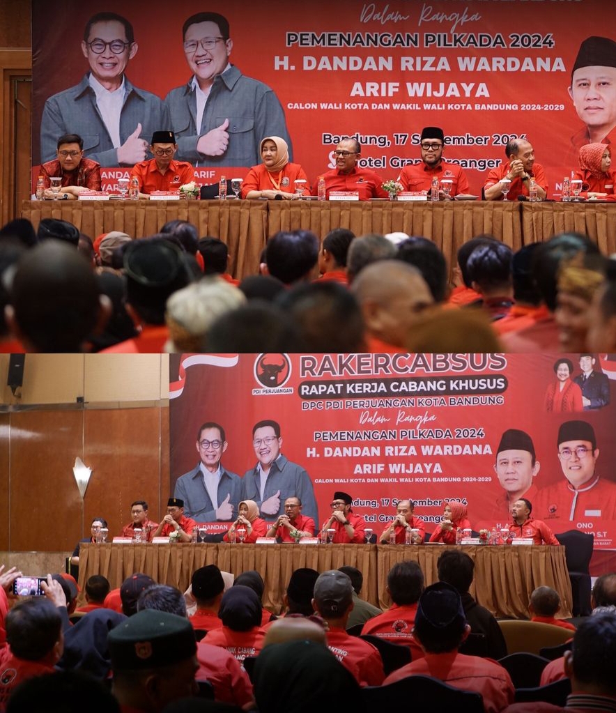 Acara rakercab tersebut di hadiri oleh seluruh pengurus cabang PDI perjuangan di kota bandung dan juga hadir calon wakil walikota bandung pengusung PDI perjuangan Dandan Riza Wardani dan calon wakil walikota bandung Arif Wijaya Dari pengusung partai demokrat