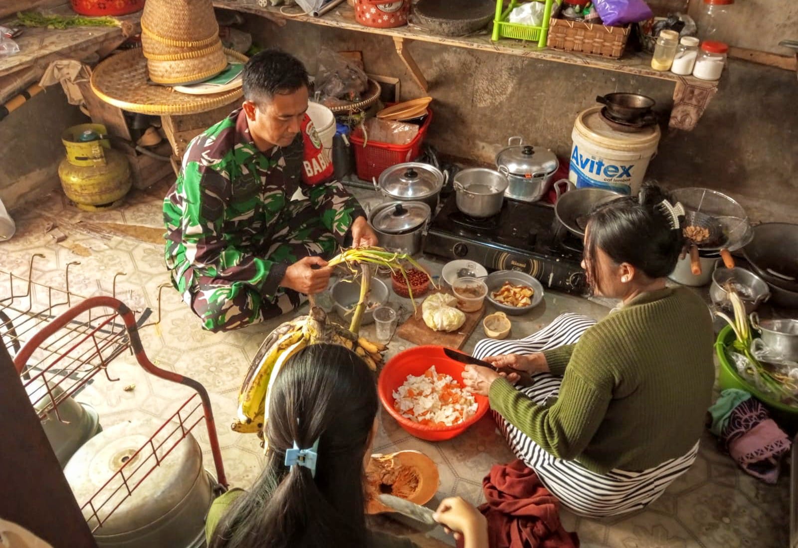 Seperti yang dilakukan Serda Ujang pada Minggu (13/10/2024) pagi di dapur umum TMMD 122, tepatnya di rumah Ai Komariah RT 04/05 Kampung Cipeundeuy, Desa Ciandam, Kecamatan Mande, Kabupaten Cianjur contohnya.