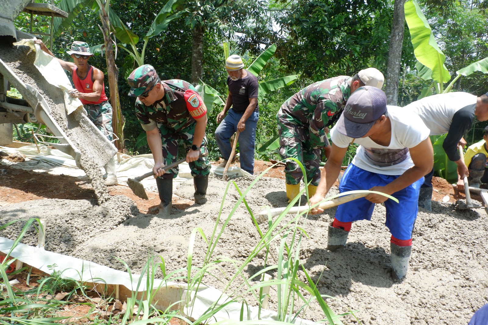 Pengecoran jalan sepanjang 2.220 meter dengan lebar 3 meter tersebut merupakan target sasaran utama dalam kegiatan satgas TMMD ke 122 Kodim 0608/Cianjur di Desa Ciandam.