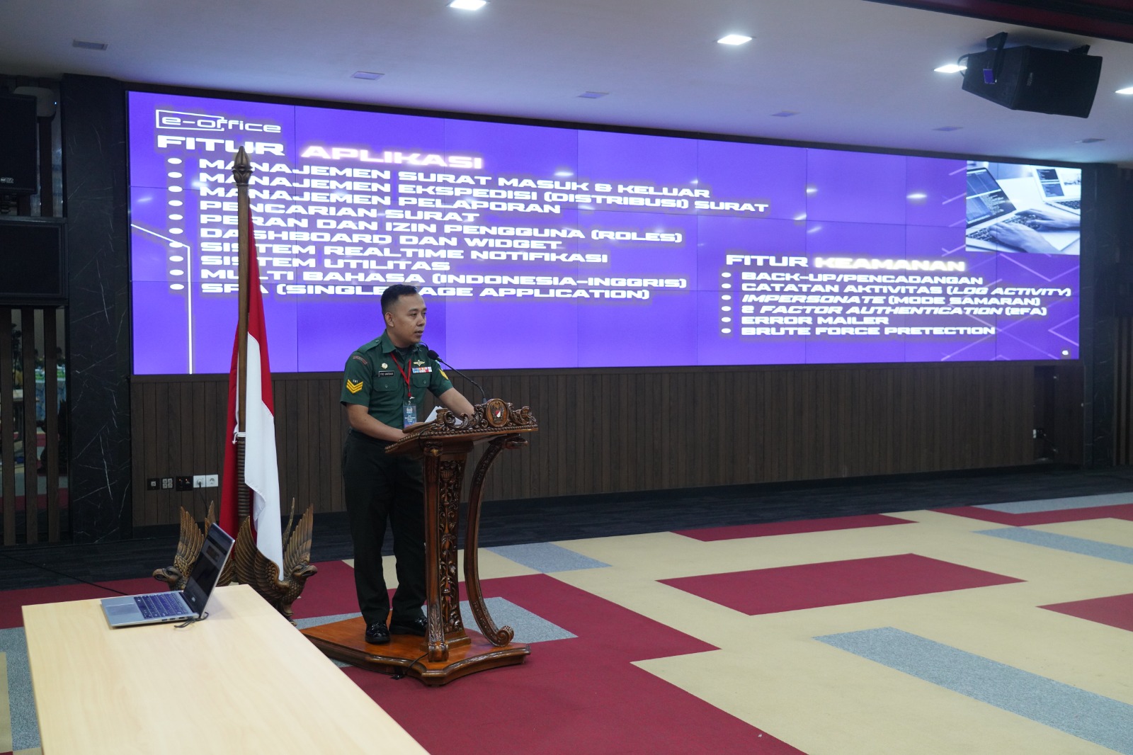 Berbagai fitur utama E-Office TNI AD menawarkan serangkaian fitur dengan jaminan keamanan untuk memastikan integritas data dalam sistem. Keunggulan aplikasi yang dibuat berhasil memukau tim juri dan mengantarkan Kodam III/Siliwangi menjadi juara pertama. (Pendam III/Siliwangi).