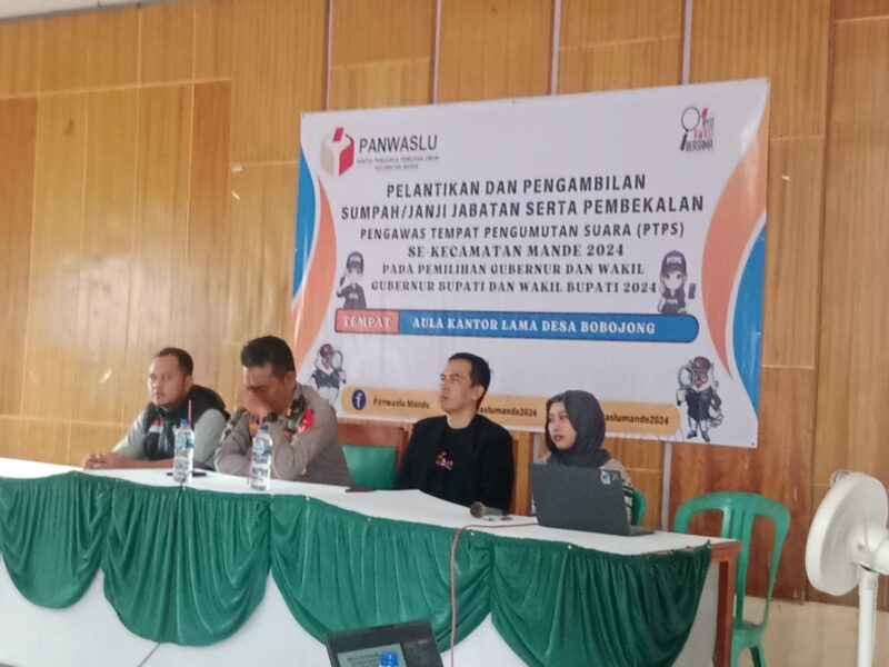 Acara pelantikan dihadiri oleh jajaran Forkompincam Mande,serta dihadiri oleh anggota KPU Kabupaten Cianjur yang memberikan penguatan materi pembekalan kepada para pengawas yang baru dilantik,