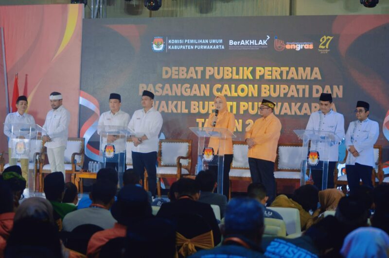 Kabupaten Purwakarta// Debat perdana Pilkada Purwakarta 2024 yang digelar di Hotel Harper By Aston, Bungursari, Purwakarta, Selasa malam, 05 November 2024 menghadirkan empat pasangan calon Bupati dan Wakil Bupati.