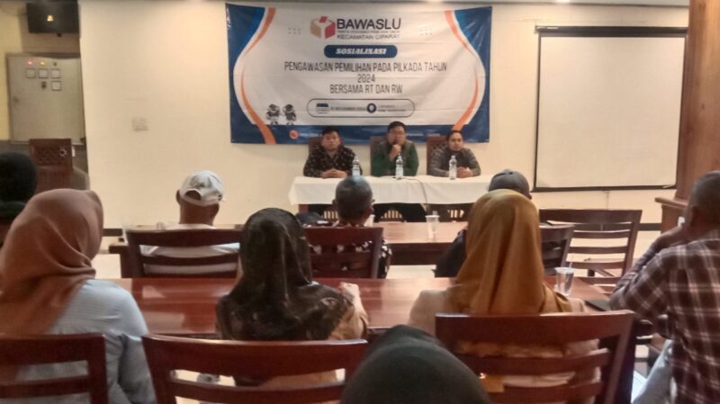 KAB.BANDUNG Panitia Pengawas Pemiu (Panwaslu) Kecamatan Ciparay menggelar sosialisasi pengawasan pada Pilkada tahun 2024 bersama RT dan RW se Kecamatan Ciparay , yang dibuka oleh Ketua Panwaslu Kecamatan Ciparay Ade Irpan Al Anshory, M.Pd, bertempat di Autorium Lantai 2 Hotel Karasak Desa Ciheulang , pada Sabtu (16/11/2024).