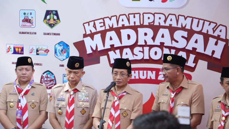 Jakarta, || Menteri Agama (Menag) Nasaruddin Umar menegaskan komitmennya untuk mengembangkan gerakan kepramukaan madrasah dalam rangka menyiapkan generasi adaptif dan kreatif. Hal ini disampaikan Menag Nasaruddin saat membuka Kemah Pramuka Madrasah Nasional (KPMN) 2024 di Cibubur, Jakarta Timur.