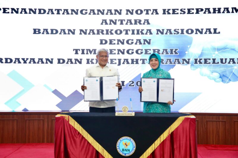 Jakarta, Satunews.id – Ketua Umum Tim Penggerak Pemberdayaan dan Kesejahteraan Keluarga (TP PKK) Tri Tito Karnavian menandatangani Nota Kesepahaman atau Memorandum of Understanding (MoU) dengan Kepala Badan Narkotika Nasional (BNN) Komisaris Jenderal Polisi Marthinus Hukom. Kerja sama tersebut mencakup upaya kedua belah pihak dalam mencegah penyebaran dan penyalahgunaan narkoba. Kegiatan ini berlangsung di Ruang Rapat Kantor BNN, Jakarta, Rabu (21/5/2025).