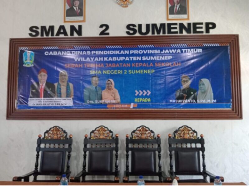 Sumenep, satunews.id – Serah terima jabatan (Sertijab) Kepala Sekolah SMAN 2 Sumenep, Madura, dipimpin langsung oleh Kepala Cabang Dinas Pendidikan (Kacabdindik) Kabupaten Sumenep Drs. Budi Sulistyo, S.Pd., M.Si.