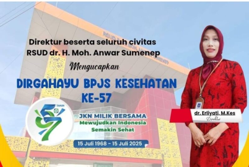 Sumenep, satunews.id – Direktur RSUD dr. H. Moh. Anwar Sumenep, dr. Erliyati, M.Kes., beserta seluruh civitas rumah sakit, menyampaikan apresiasi dan ucapan selamat dalam momentum HUT ke-57 kepada BPJS Kesehatan yang selama lebih dari setengah abad telah menjadi garda terdepan dalam mewujudkan sistem jaminan kesehatan nasional.