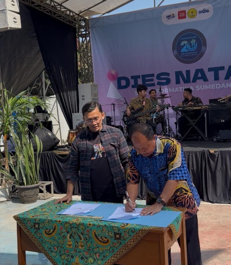 Sumedang – Suasana penuh semangat mewarnai peringatan Dies Natalis ke-20 SMK Informatika Sumedang, ketika pada hari itu juga dilangsungkan penandatanganan nota kesepahaman (MoU) antara SMK Informatika Sumedang dengan CihoGroup. Penandatanganan ini menjadi momen penting yang menandai langkah strategis dalam memperkuat hubungan antara dunia pendidikan dengan dunia industri, demi mencetak sumber daya manusia yang lebih siap menghadapi tantangan zaman.
