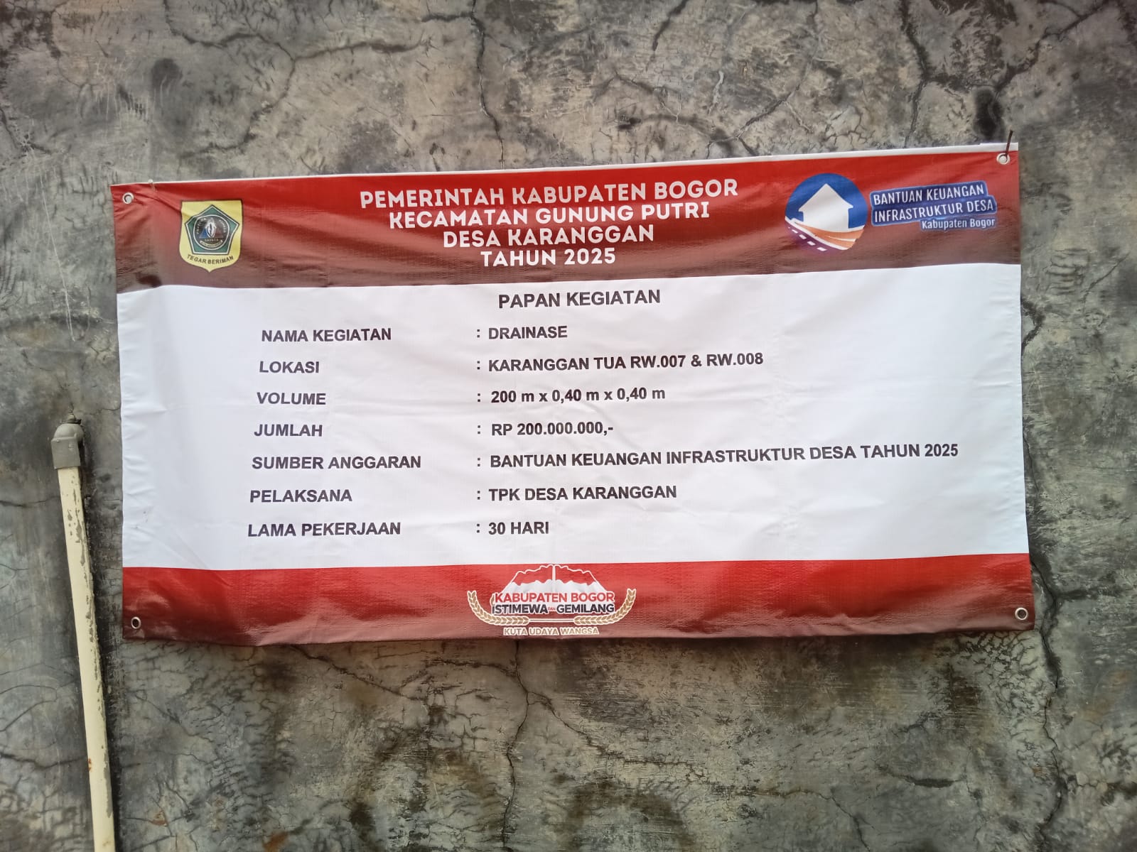 Menurut staf desa, Nauval, terdapat tiga titik utama yang menjadi prioritas pembangunan drainase tahun ini. Selain itu, Pemdes Karanggan juga tengah mempersiapkan program lanjutan berupa rehabilitasi Kantor Desa serta peningkatan infrastruktur lingkungan di wilayah RW 005.