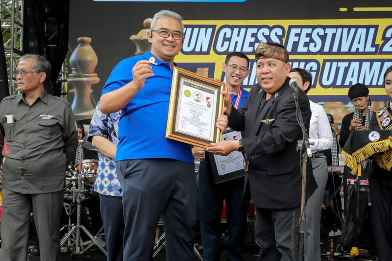 “Dengan bangga kami nyatakan, rekor Indonesia bermain catur dengan jumlah peserta pelajar terbanyak berhasil diraih di Kota Bandung,” ujarnya disambut tepuk tangan meriah.