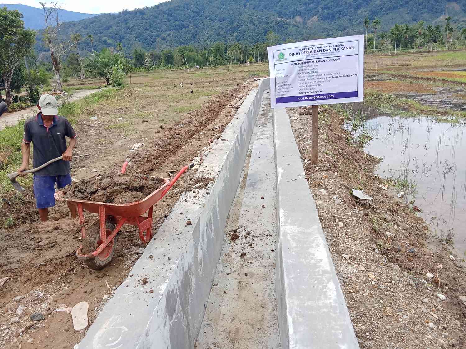 Lebih lanjut, Aladin menjelaskan bahwa pengerjaan proyek dilakukan secara profesional, berpedoman pada Rencana Anggaran Biaya (RAB) serta spesifikasi teknis yang ditetapkan. Ia juga menekankan penggunaan tenaga tukang berpengalaman dan material berkualitas, sehingga hasil pekerjaan diharapkan memberikan manfaat optimal bagi para petani.