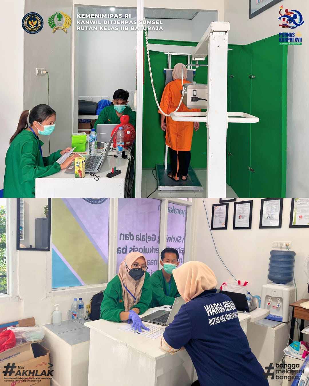 Petugas kesehatan mendatangi langsung Rutan Baturaja dan melakukan pemeriksaan terhadap warga binaan secara bergiliran. Dengan metode rontgen, kondisi paru-paru dapat terpantau lebih jelas, sehingga apabila ditemukan indikasi penyakit, penanganan medis bisa segera diberikan.