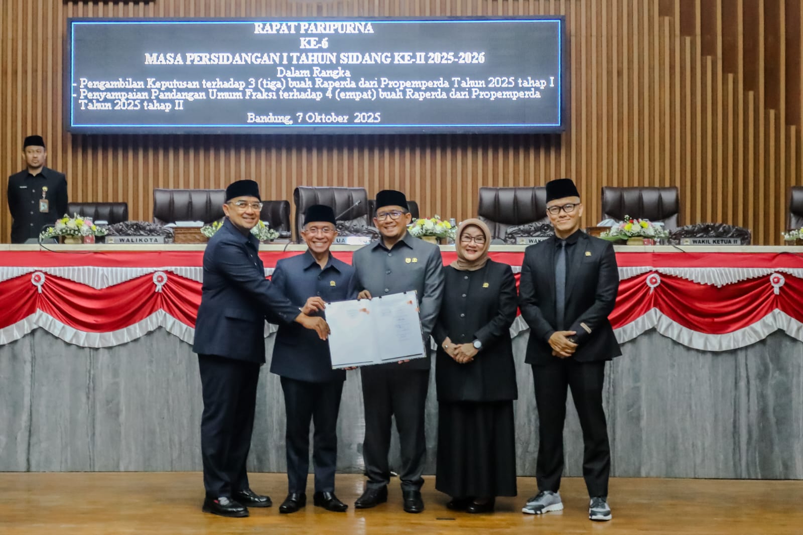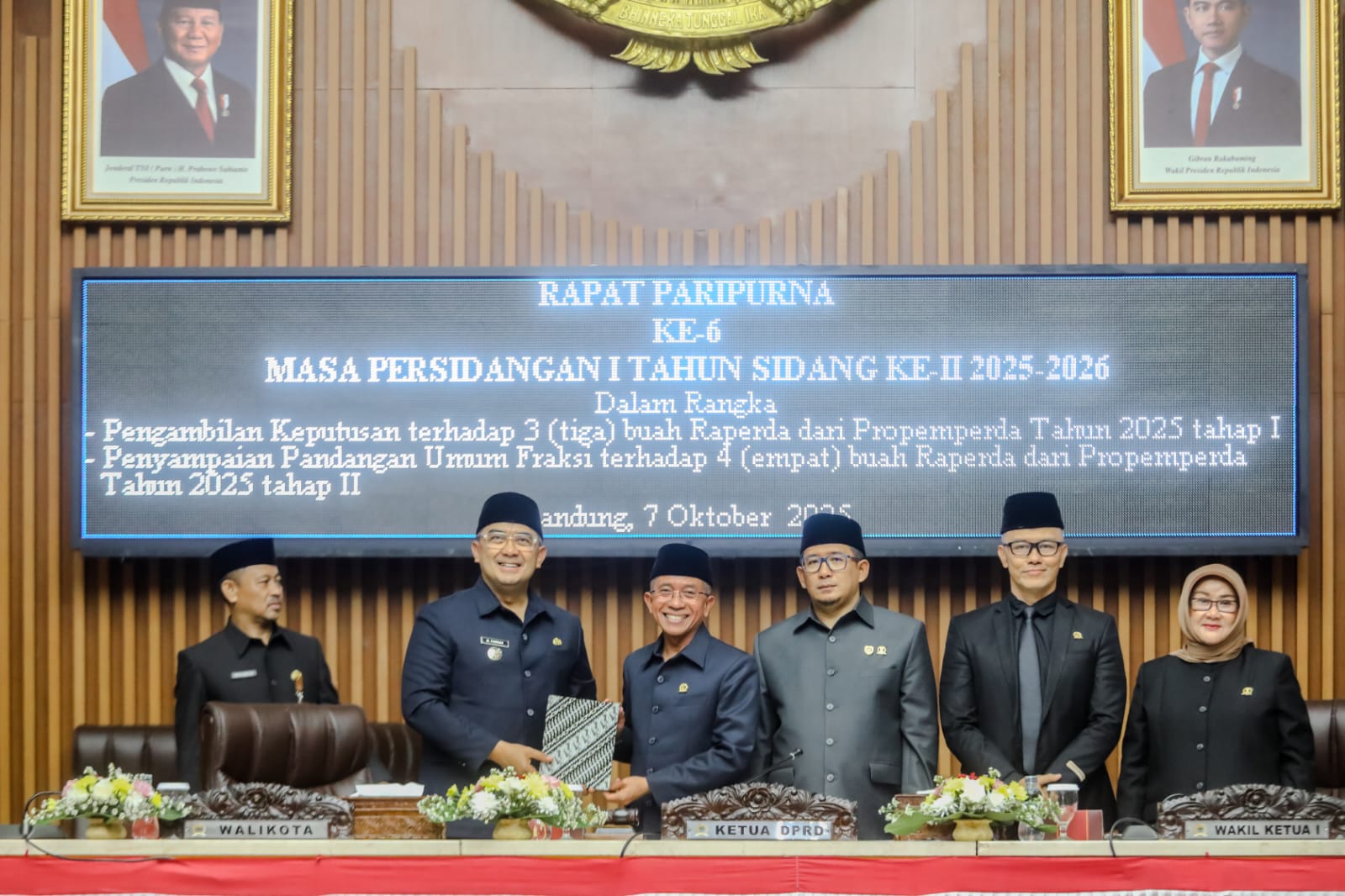 Kota Bandung, Satunews.id – Tiga rancangan peraturan daerah (Raperda) resmi disetujui oleh Dewan Perwakilan Rakyat Daerah (DPRD) Kota Bandung dalam Rapat Paripurna ke-6 Masa Persidangan II Tahun Sidang 2025–2026, di Ruang Rapat Paripurna DPRD Kota Bandung, Jalan Sukabumi, Selasa, 7 Oktober 2025.