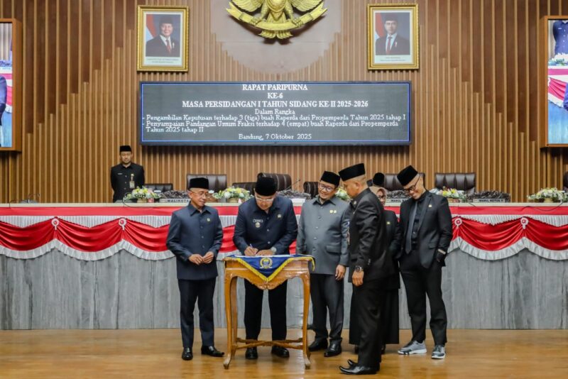 Kota Bandung, Satunews.id – Tiga rancangan peraturan daerah (Raperda) resmi disetujui oleh Dewan Perwakilan Rakyat Daerah (DPRD) Kota Bandung dalam Rapat Paripurna ke-6 Masa Persidangan II Tahun Sidang 2025–2026, di Ruang Rapat Paripurna DPRD Kota Bandung, Jalan Sukabumi, Selasa, 7 Oktober 2025.
