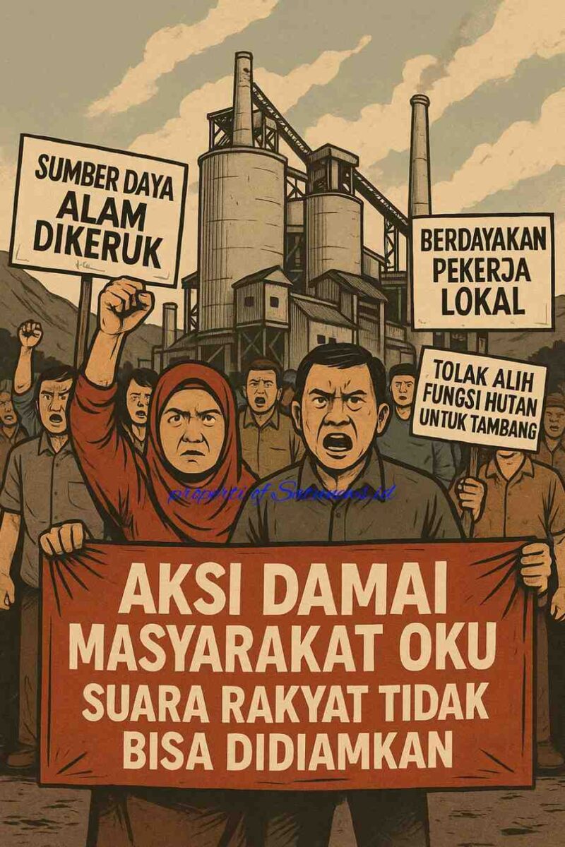 “Sumber daya alam dikeruk, polusi dihasilkan, bencana didatangkan, namun pekerja dari luar OKU. Rakyat OKU hanya dijadikan penonton!”