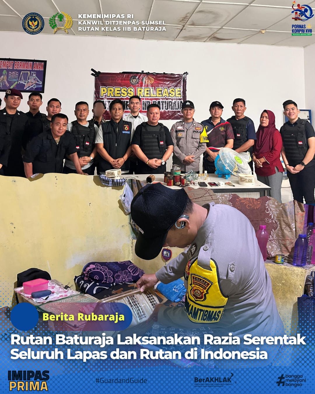 Razia dilaksanakan pada Sabtu dini hari (11/10/2025), dipimpin langsung oleh Kepala Rutan Baturaja, dengan dukungan penuh dari jajaran Polres Ogan Komering Ulu (OKU).