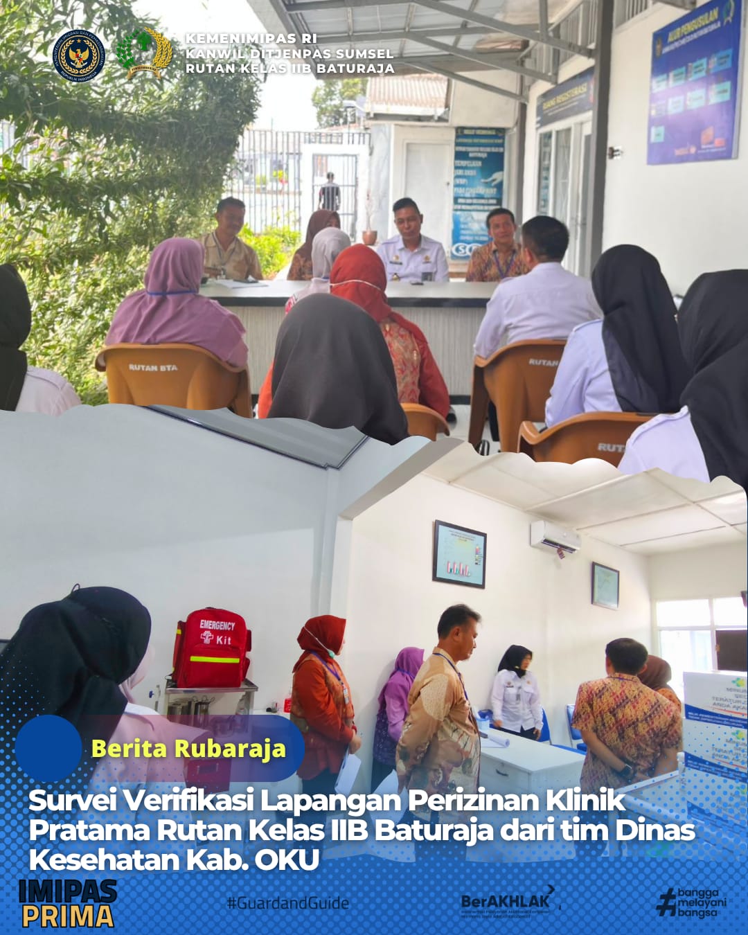 Oku, Satunews.id – Dalam upaya memastikan pelayanan kesehatan yang prima dan sesuai standar di lingkungan Rutan Kelas IIB Baturaja, tim dari Dinas Kesehatan Kabupaten Ogan Komering Ulu (OKU) hari ini melaksanakan Survei Verifikasi Lapangan Perizinan Klinik Pratama. Kegiatan ini menjadi langkah strategis untuk memastikan bahwa klinik yang beroperasi di Rutan memiliki perizinan yang sah dan memenuhi semua persyaratan teknis serta administrasi yang ditetapkan. Kamis (16/10)