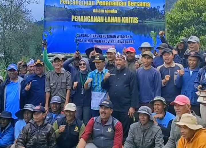 Kertasari (Satunews.id) — Komitmen Desa Tarumajaya sebagai pionir konservasi alam di Jawa Barat terus dibuktikan dengan aksi nyata. Pemerintah Desa Tarumajaya bersama Arta Graha Peduli, Dinas Kehutanan, Pemerintah Kecamatan Kertasari, dan Kelompok Tani/Gapoktan Dusun Kertasari 2, menggelar aksi penanaman 1.000 bibit kopi jenis Arabika di Blok Babakan Ranca pada Kamis (23/10/2025).