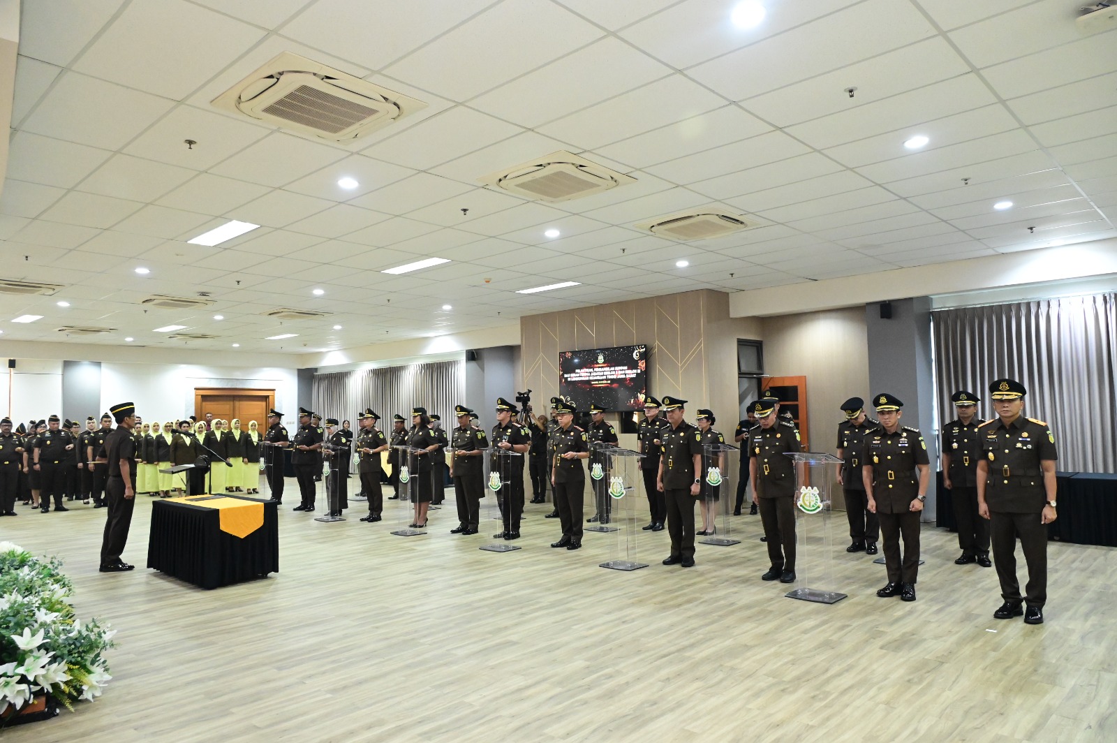 Kota Bandung, Satunews.id – Selasa, 28 Oktober 2025 | Kepala Kejaksaan Tinggi (Kajati) Jawa Barat, Dr. Hermon Dekristo, S.H., M.H., resmi melantik dan mengambil sumpah 25 pejabat struktural eselon II dan III di lingkungan Kejaksaan Tinggi Jawa Barat. Acara pelantikan digelar secara khidmat di Aula R. Soeprapto Lantai 8 Kantor Kejati Jawa Barat, dan turut dihadiri oleh para Asisten dan Koordinator Kejati Jawa Barat.