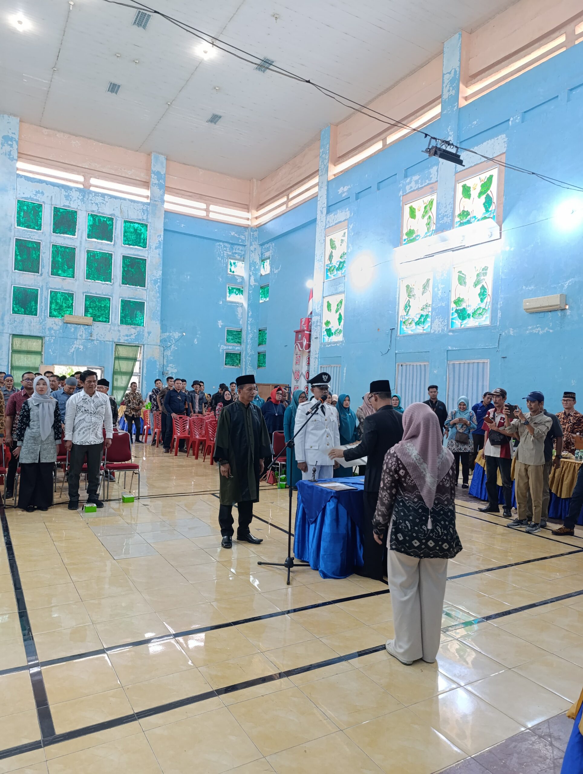 Pelantikan berlangsung khidmat di Aula Kantor Kecamatan Baturaja Timur, Kamis (13/11/2025).