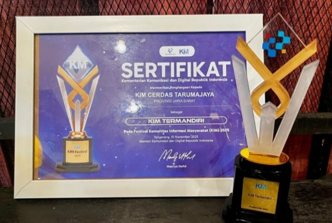 Bandung – Kelompok Informasi Masyarakat (KIM) Cerdas Tarumajaya, Kabupaten Bandung, kembali menorehkan prestasi di tingkat nasional. Untuk kedua kalinya secara berturut-turut (back to back), KIM Cerdas Tarumajaya meraih penghargaan sebagai KIM Termandiri dari Kementerian Komunikasi dan Digital Republik Indonesia (Kemkomdigi RI) pada ajang bergengsi KIMFest 2025 yang digelar di Alun-alun Kota Tangerang, 14–15 November 2025.