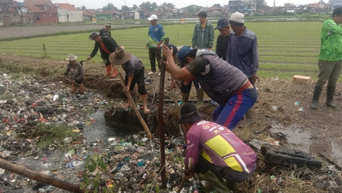 Dayeuhkolot — Peduli terhadap lingkungan yang bersih, sehat dan bebas dari banjir, Kepala Desa (Kades) Cangkuang Wetan Asep Kusmiadi pimpin Kerja Bakti bersih sampah di selokan Cinyungcung Sukaluyu Bojongseureuh RW 07 Desa Cangkuang Wetan Kecamatan Dayeuhkolot Kabupaten Bandung. Minggu (23/11/2025).
