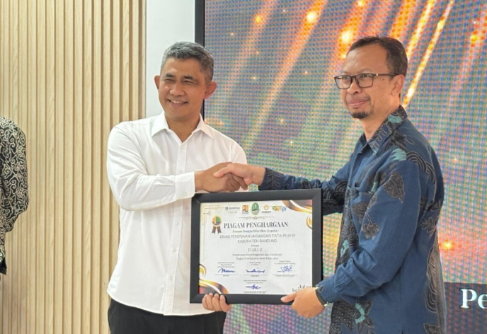 Penghargaan Penyelenggaraan Sub Urusan Jasa Konstruksi Tingkat Provinsi Jawa Barat ini diterima langsung Kepala DPUTR Kabupaten Bandung Zeis Zultaqawa dari Kepala DBMPR Jabar Agung Wahyudi dan Ketua Lembaga Pengembangan Jasa Konstruksi (LPJK) Taufik Widjoyono, di Aula Utama DBMPR Jabar, Selasa 26 November 2025.