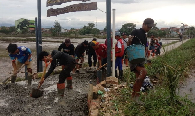 Perbaikan jalan tersebut dilakukan sepanjang kurang lebih 120 meter dan lebar 1 meter, Kegiatan dilaksanakan secara gotong royong dengan melibatkan para pemuda PRIMA sebagai bentuk kepedulian terhadap fasilitas umum yang menjadi akses penting bagi warga.