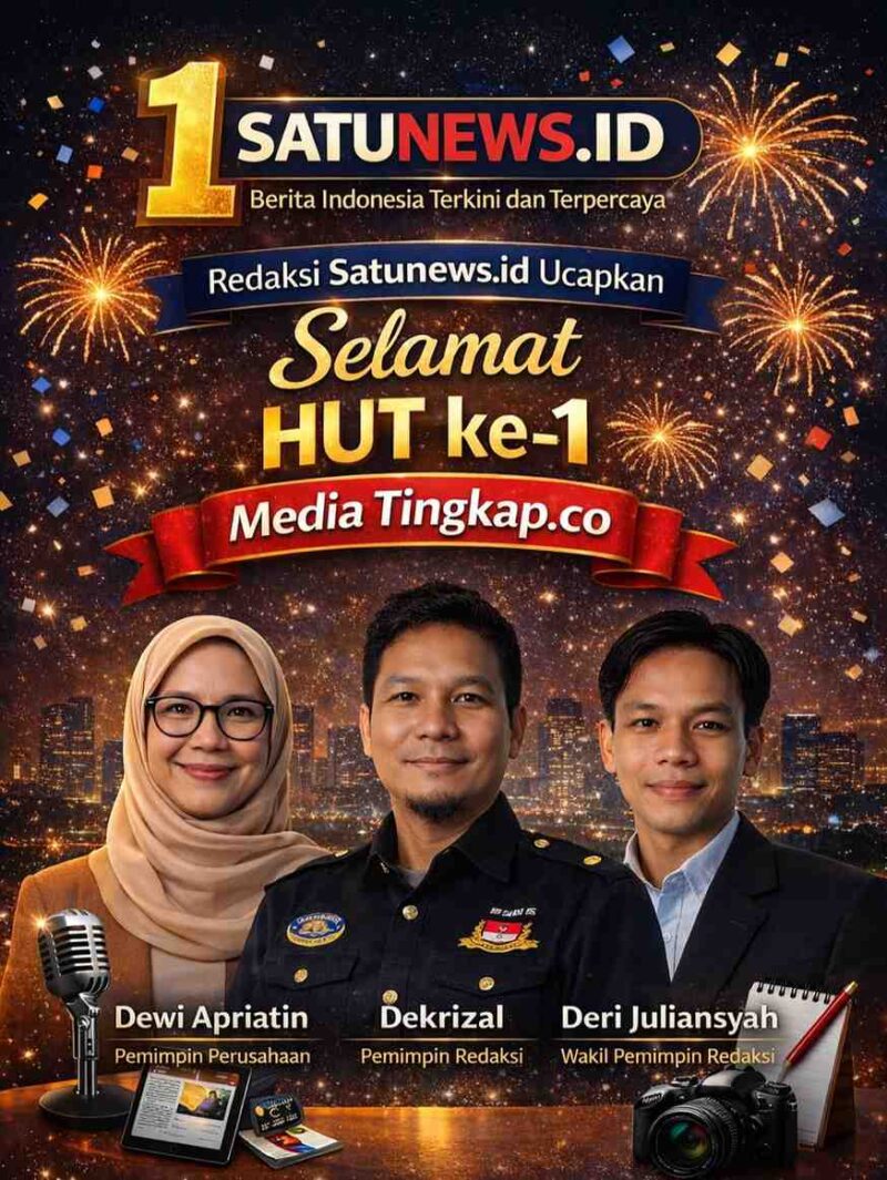 Kota Bandung, Satunews.id – Jajaran Redaksi Media Satunews.id menyampaikan ucapan selamat dan sukses atas peringatan Hari Ulang Tahun (HUT) ke-1 Media Tingkap.co.