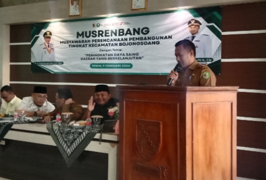 Kab.Bandung – Pemerintah Kecamatan Bojongsoang menggelar Musyawarah Perencanaan Pembangunan (Musrenbang) tingkat kecamatan untuk penyusunan RKPD Tahun 2027 dengan tema “Peningkatan Daya Saing Daerah yang Berkelanjutan”. Kegiatan tersebut berlangsung di Aula Kecamatan Bojongsoang, Senin (9/2/2026).