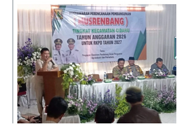 Kecamatan Cidahu, Sukabumi – Pemerintah Kecamatan Cidahu menggelar Musyawarah Perencanaan Pembangunan (Musrenbang) Tingkat Kecamatan Cidahu Tahun Anggaran 2026 untuk penyusunan RKPD Tahun 2027. Acara ini dihadiri oleh unsur Forkopimcam, anggota DPRD Kabupaten Sukabumi, kepala desa, tokoh masyarakat, dan organisasi profesi pada Kamis (12/2/2026).