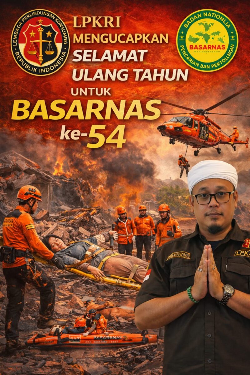 satunews.id – Bogor — Ketua Dewan Pimpinan Daerah Lembaga Perlindungan Konsumen Republik Indonesia (DPD LPK-RI) Jawa Barat, Pamuji Rahardjo, S.Kom, beserta seluruh jajaran, menyampaikan ucapan selamat ulang tahun ke-54 kepada Badan Nasional Pencarian dan Pertolongan (Basarnas).Sabtu,28/02/2026