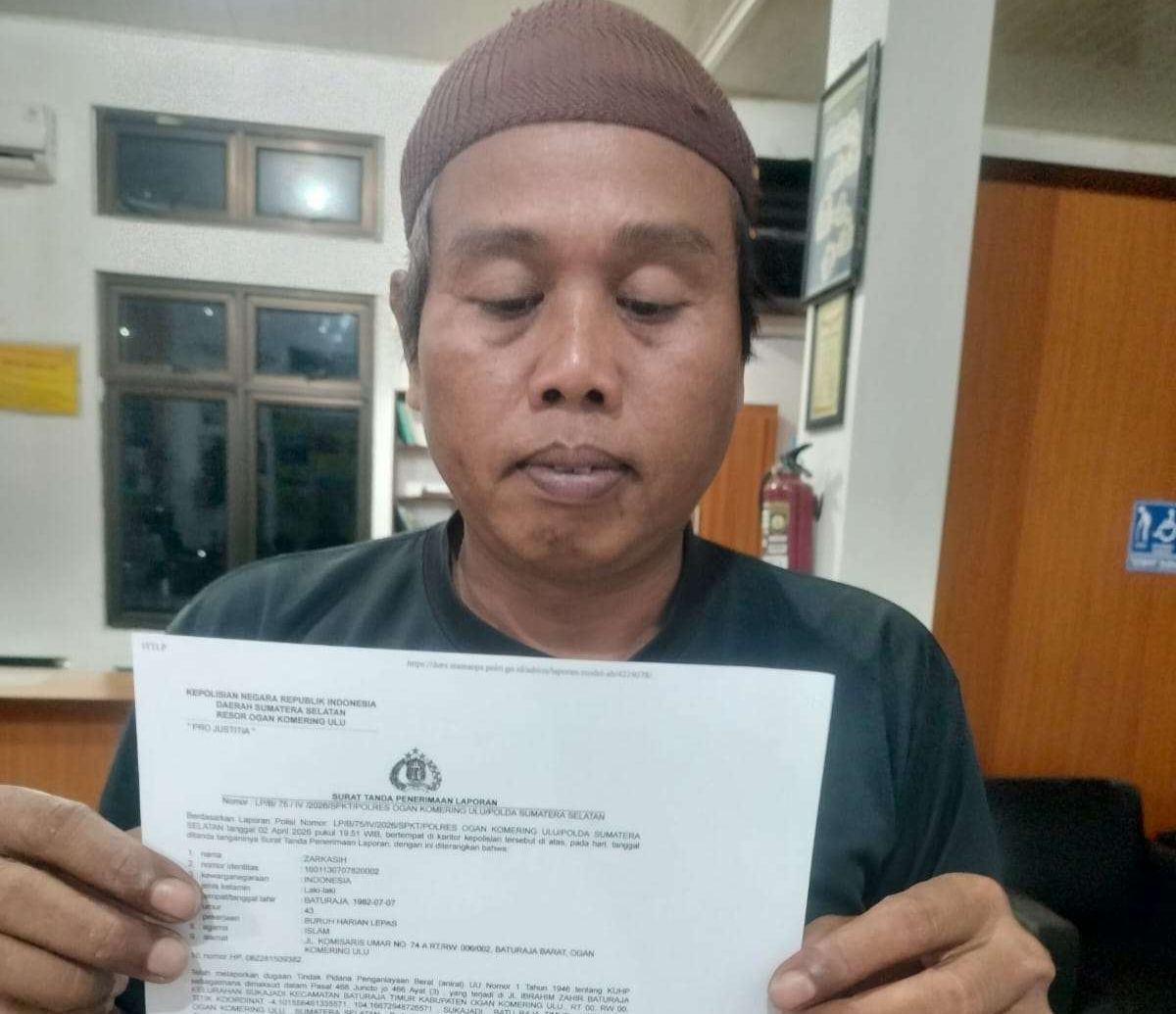 Peristiwa tersebut kemudian dilaporkan oleh pihak keluarga melalui Zarkasih (44) ke SPKT Polres OKU dengan nomor laporan: LP/B/75/IV/2026/SPKT/POLRES OKU/POLDA SUMSEL.
