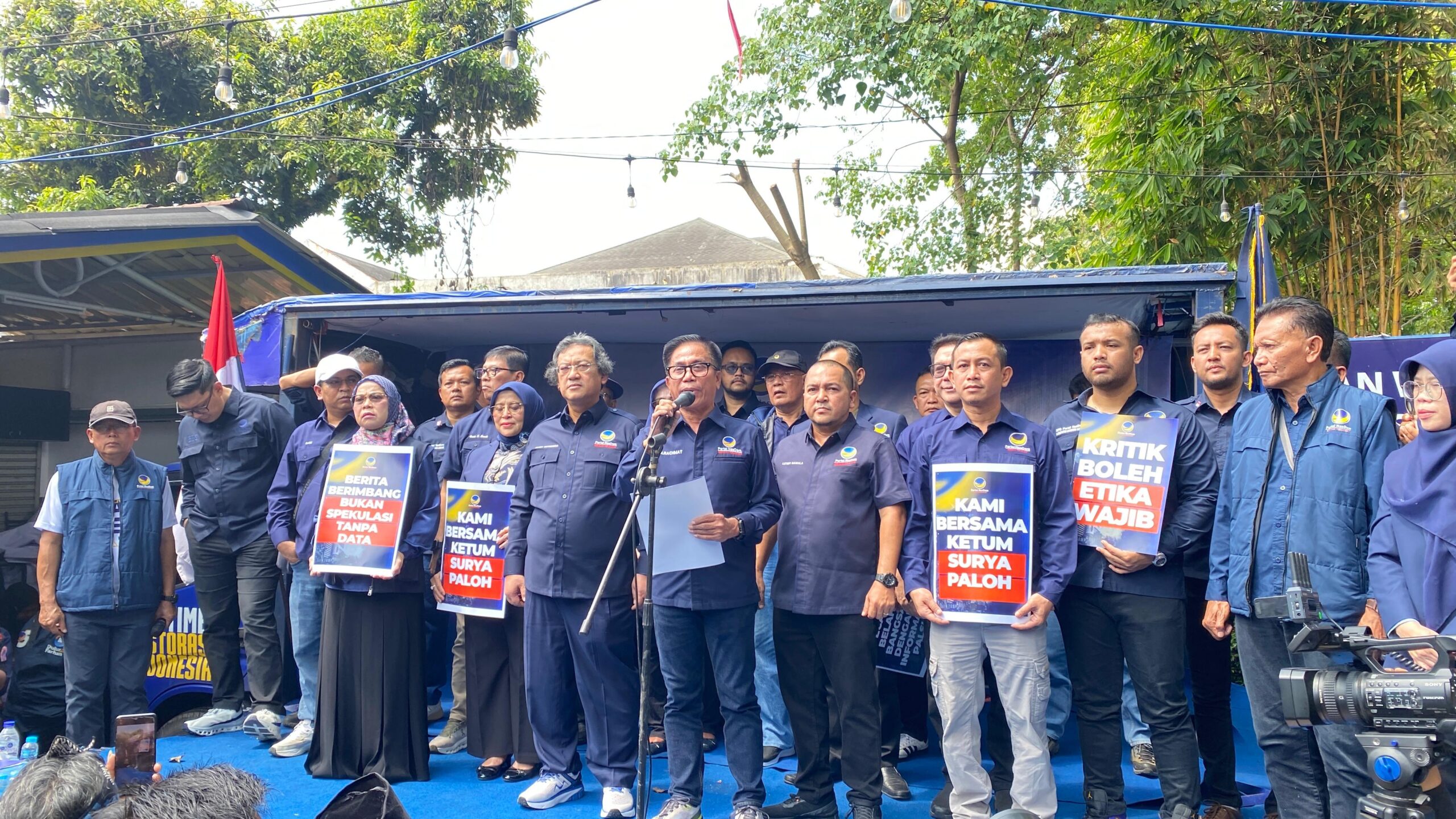 Sampaikan berita dengan data yang jelas dan terverifikasi, tegasnya.Konferensi pers tersebut dihadiri oleh seluruh Ketua DPD kabupaten/kota se-Jawa Barat serta ribuan kader NasDem yang menyatakan solidaritas dan dukungan penuh terhadap partai.