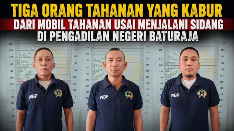 *BATURAJA, // Satunews.id* – Tiga terdakwa perkara narkotika melarikan diri dari pengawalan di halaman Rutan Kelas IIB Baturaja, Kamis sore. Insiden terjadi saat Tim Pengawal Tahanan Kejari Ogan Komering Ulu memindahkan para tahanan dari mobil operasional ke dalam rutan usai sidang di Pengadilan Negeri Baturaja.