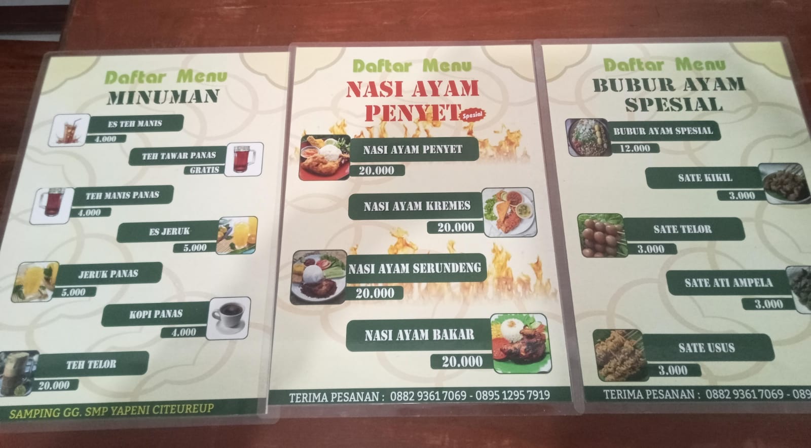 Berlokasi strategis di simpang Gang Sekolah YAPENI Citeureup, tepat di atas Kantor Desa Citeureup, tempat ini mudah dijangkau oleh siapa saja. Menu yang ditawarkan pun beragam, mulai dari buryam, ayam bakar, hingga aneka minuman dengan harga yang ramah di kantong.
