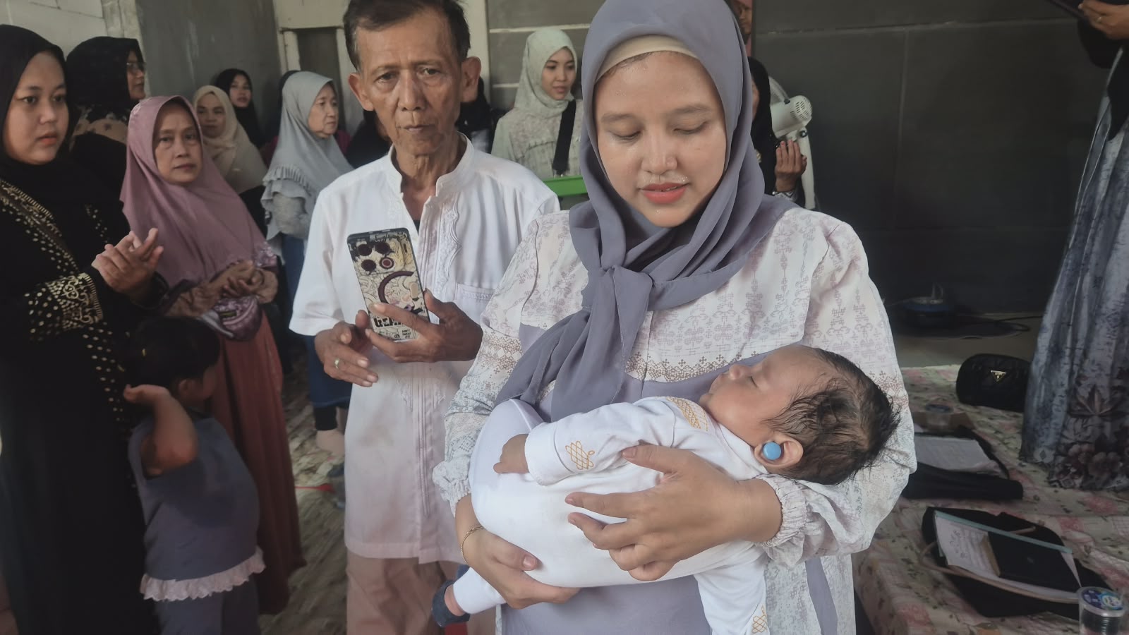 Rangkaian acara berlangsung tertib dan penuh makna, dihadiri oleh keluarga besar Ketua PJPM Abah Dennys, serta para ibu-ibu jamaah pengajian yang turut memanjatkan doa bersama. Nuansa religius semakin terasa melalui lantunan marhaban yang syahdu, disertai prosesi gunting rambut sebagai bagian dari rangkaian aqiqah yang sarat makna dan tradisi.