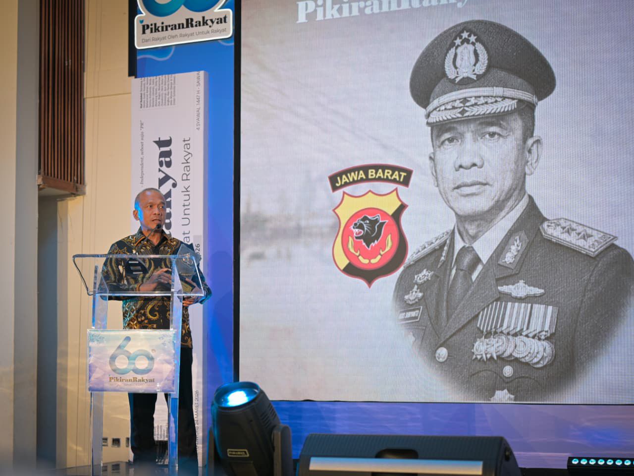 Kapolda Jawa Barat, Irjen Pol. Dr. Rudi Setiawan, S.I.K., S.H., M.H., menghadiri puncak peringatan Hari Ulang Tahun (HUT) ke-60 surat kabar harian Pikiran Rakyat yang diselenggarakan di Ballroom Hotel Savoy Homann, Bandung, pada Jumat (24/4/2026).