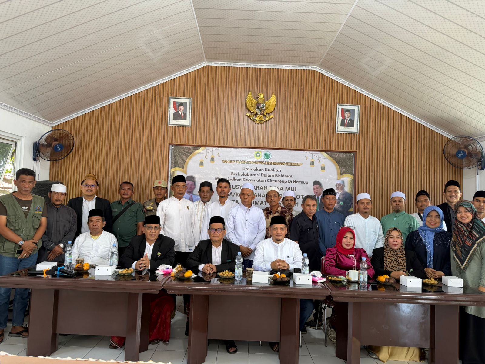 Kegiatan ini dihadiri oleh Plt Camat Citeureup, Bapak Enday Hidayat, S.Ag., M.A., Ketua MUI Kecamatan Citeureup KH. Muhammad Basri, S.Ag., Kepala Desa Tarikolot H. Kurniawan, S.Sos., M.Si., serta unsur perangkat desa, BPD, LPM, tokoh agama, tokoh masyarakat, Babinsa, Bhabinkamtibmas, hingga Binwil Pol PP Desa. Kehadiran lintas elemen ini menjadi penegasan bahwa eksistensi dan peran MUI mendapat dukungan penuh dari pemerintah dan masyarakat.
