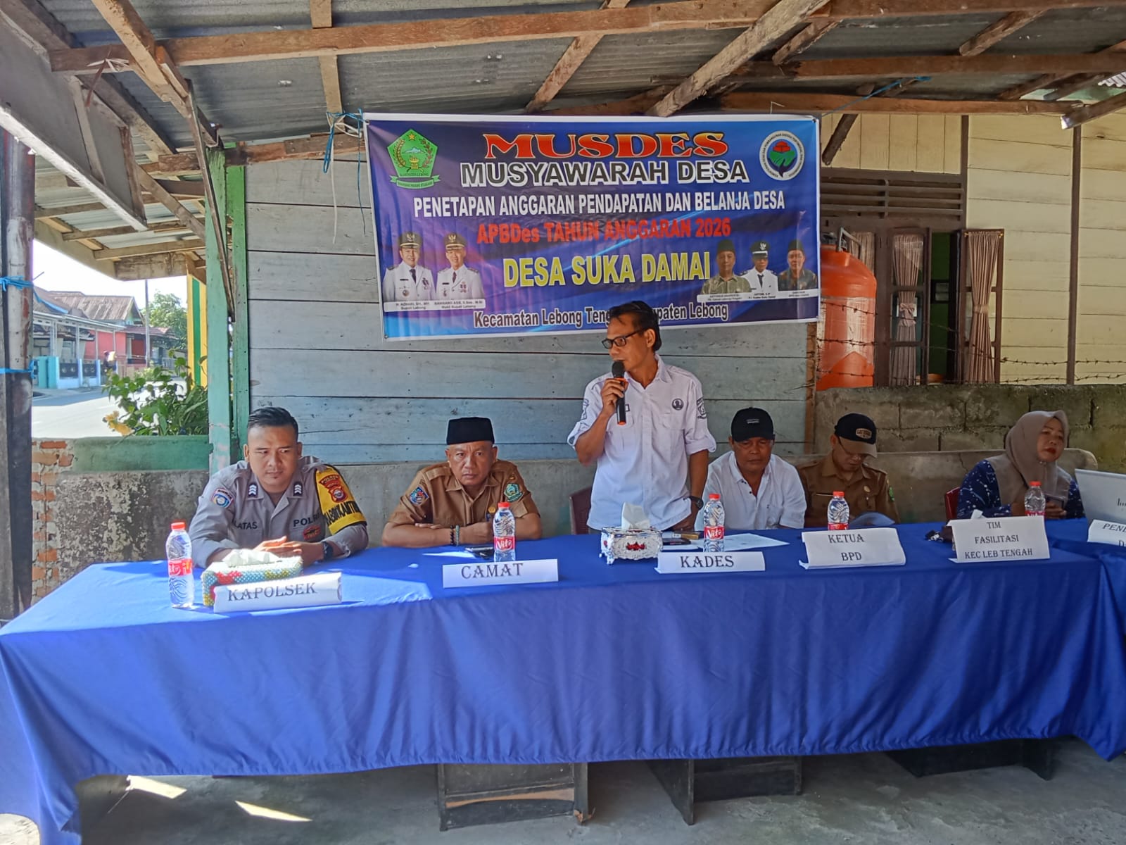 Kepala Desa Suka Damai dalam sambutannya menyampaikan bahwa penetapan APBDes merupakan langkah strategis dalam menentukan arah pembangunan desa ke depan.