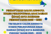 Kota Bandung, Satunews.id – Dinas Pemberdayaan Perempuan dan Perlindungan Anak (DP3A) mengumumkan pembukaan pendaftaran Calon Anggota Komisi Perlindungan Anak Daerah (KPAD) untuk periode 2025–2030….